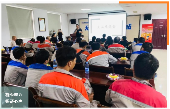 為搭建員工與公司之間有效溝通渠道,切實幫助員工解決工作和生活中的實際問題,營造積極向上、和諧友愛的企業(yè)文化氛圍,8月19日上午,由天創(chuàng)管業(yè)人力行政部組織舉辦的員工座談會在公司辦公樓四層多功能廳召開,來自各車間及職能部門在內(nèi)的30余位員工代表參與了此次座談會。